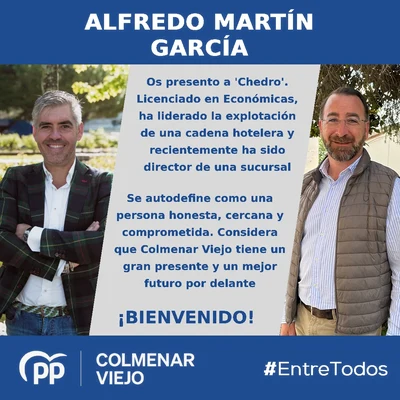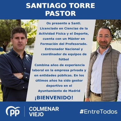 El Secretario General del Partido en la localidad y Primer Teniente de Alcalde del Ayuntamiento, acepta el reto con ilusión, optimismo y ganas de seguir mejorando Colmenar Viejo.