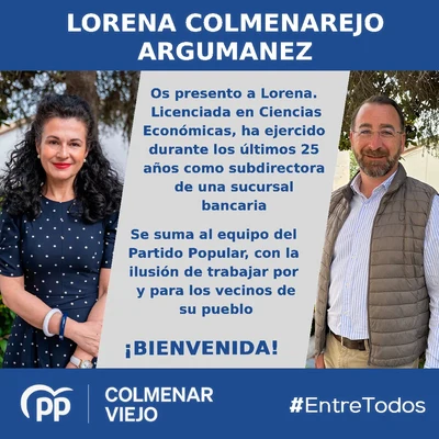 Graduada en Derecho y Ciencias Políticas, cuenta con un Máster en Gobierno, Liderazgo y Gestión Pública. Enamorada de Colmenar Viejo y sus tradiciones, en los últimos años ha sido el nexo de unión del equipo de gobierno con el vecino.